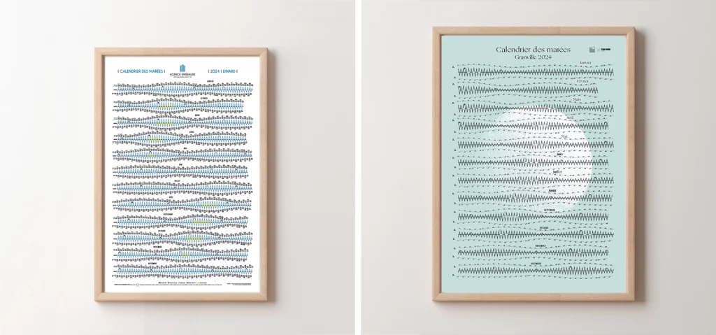 Vous souhaitez ajouter votre logo, choisir votre titre ou personnaliser la couleur ? C’est votre vision, nous sommes là pour la réaliser. Nos calendriers des marées grand format ne se contentent pas de décorer ; ils offrent un service essentiel à vos visiteurs et clients.